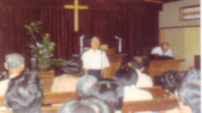 とある町での教会の場所を祈り探しつつ、河南町丘上に移転し、河南ビル3階で礼拝をしていました。